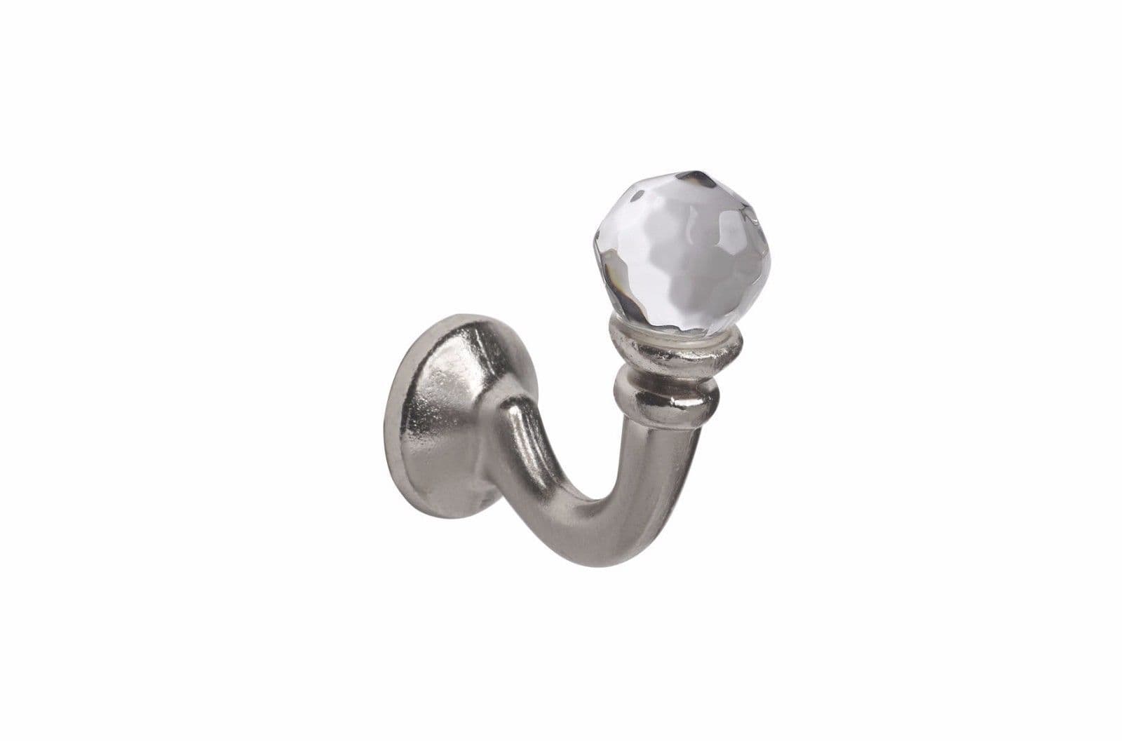The Speedy Crystal Palma metal curtain tie-back hooks feature a steel hook with a glass ball tip for the curtain tiebacks to attach onto.
