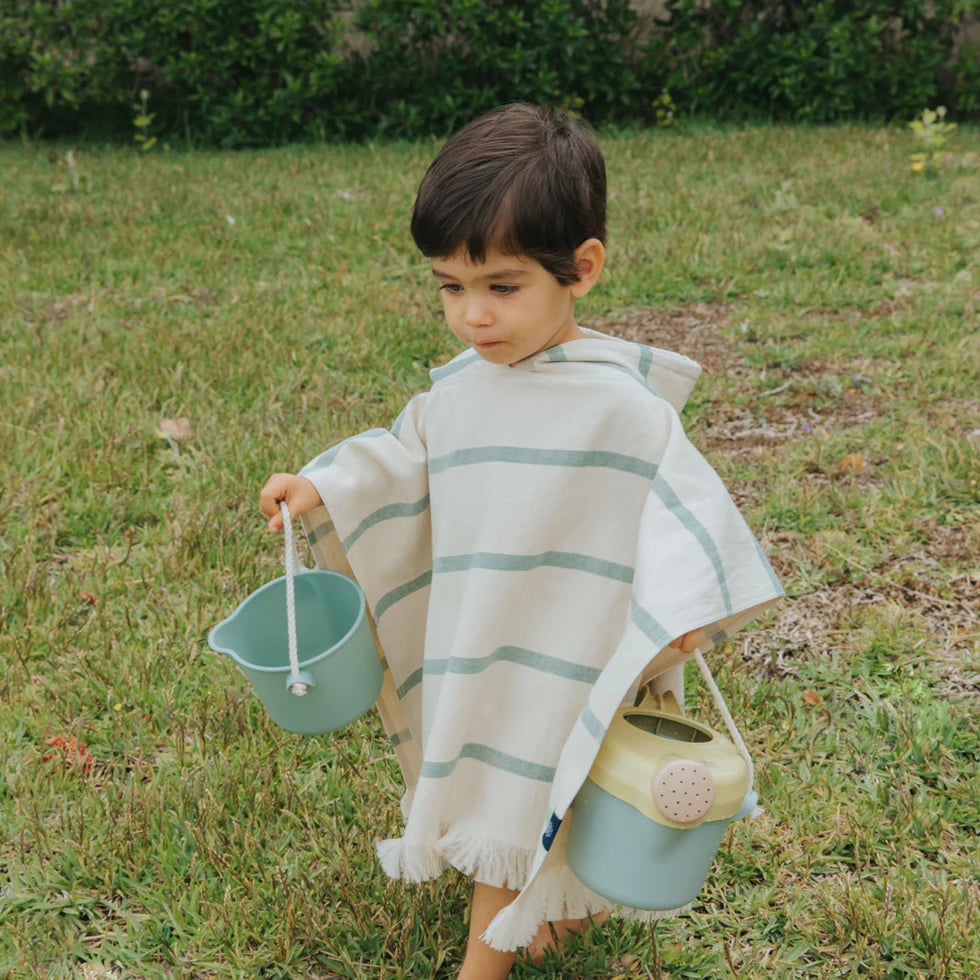 Made in 100% high-quality cotton, these beach ponchos have terry fabric on the backside, perfect to absorb the water drops on your kids' skin after a fresh swim in the sea, and fouta fabric on the frontside.